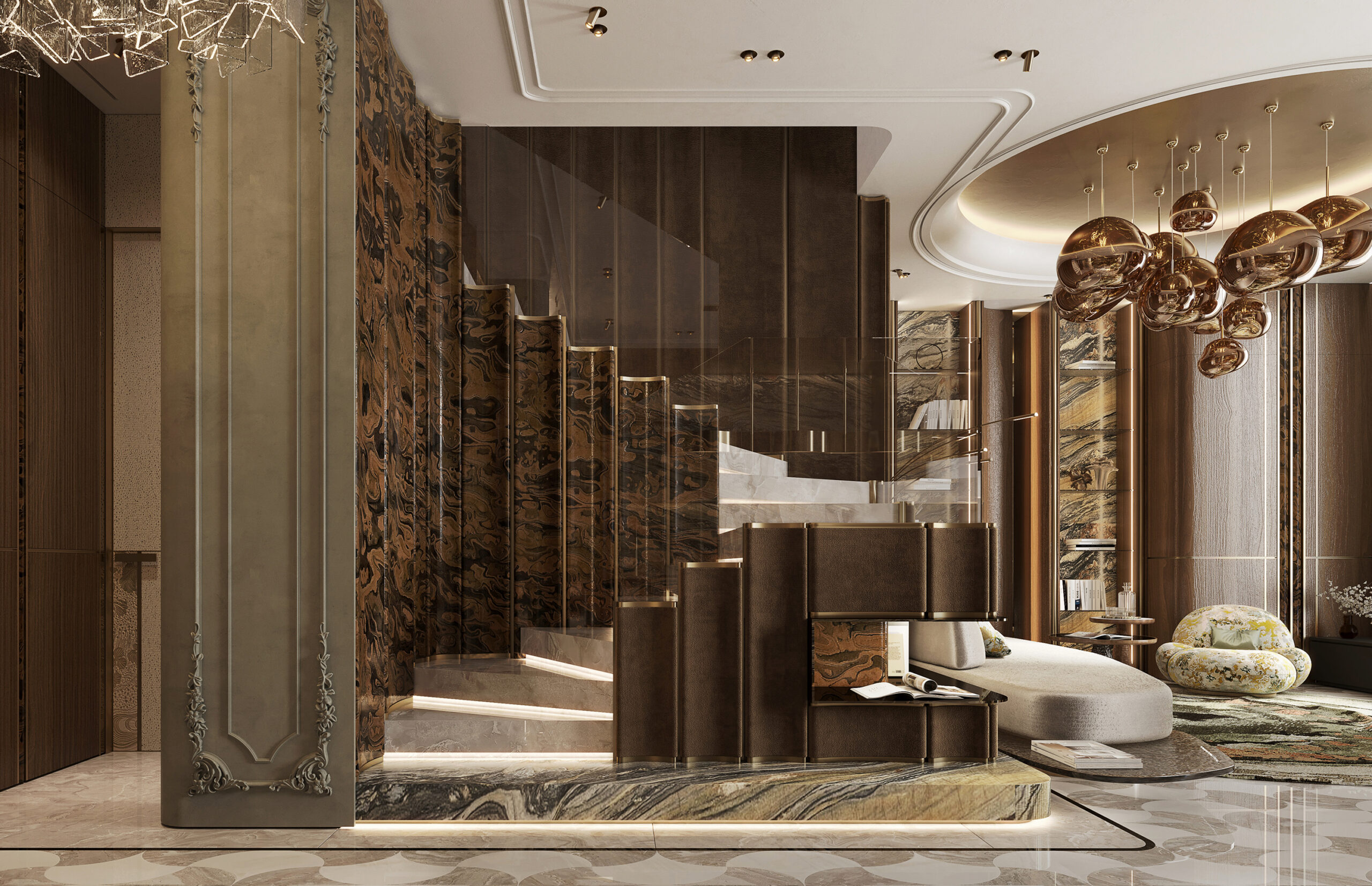 A limited collection of ultra-exclusive penthouses occupies the upper levels of the tower, offering exceptional scale, privacy, and panoramic vistas. Configurations range from 1-bedroom to 3-bedroom penthouses, with generous internal and total areas extending up to approximately 4,953 sq. ft.