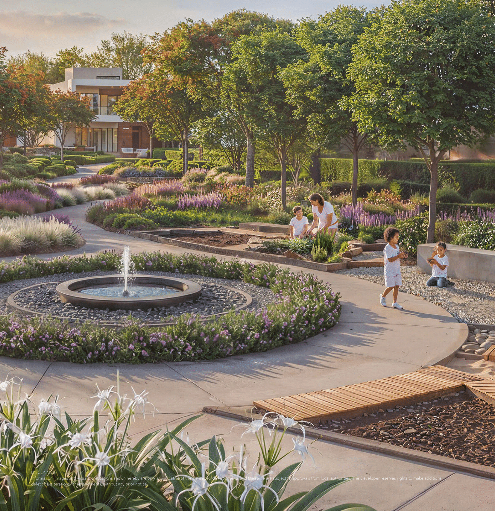 Although the community accommodates approximately 20,000 families, layered landscaping and carefully scaled neighborhoods preserve privacy while maintaining a sense of vibrancy.